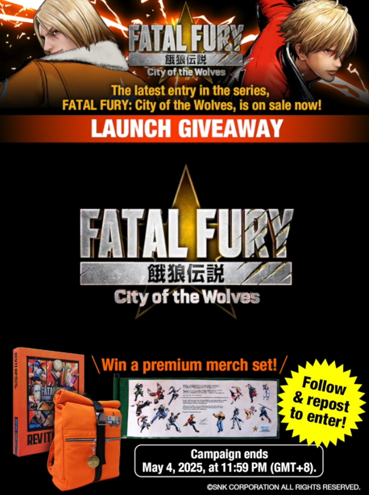 เพื่อเฉลิมฉลองการเปิดตัวของ FATAL FURY: City of the Wolves เราขอเชิญทุกคนร่วมสนุกกับกิจกรรม Follow & Repost บน X (Twitter)!