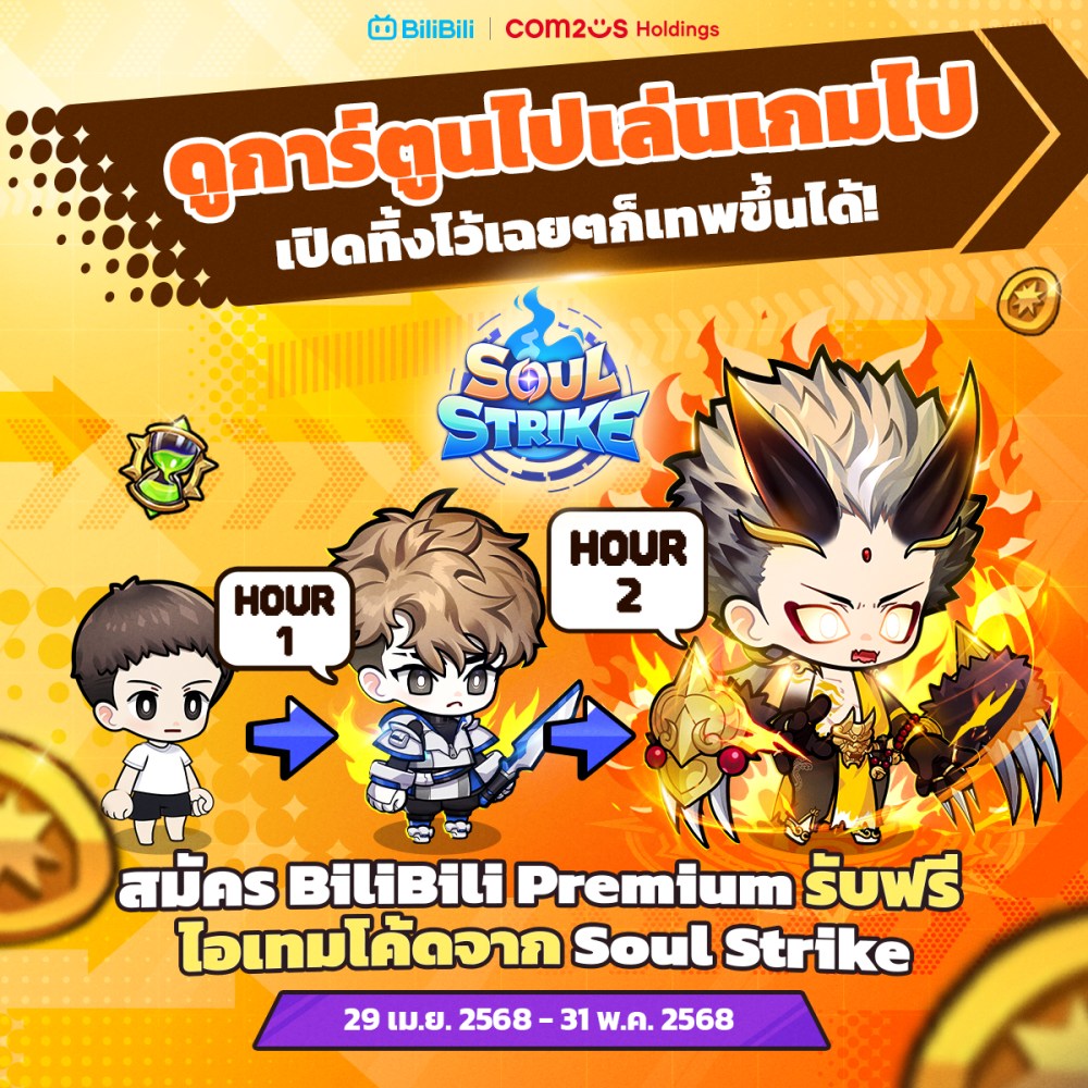 - Soul Strike x BiliBili สมัครพรีเมียมวันนี้ รับฟรี! ไอเทมโค้ดมูลค่ากว่า 3,000 บาท