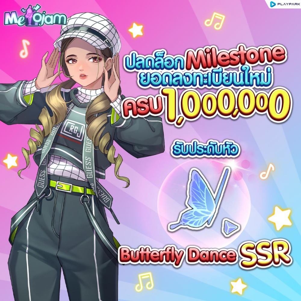พิเศษ! สำหรับทุกคนที่ลงทะเบียนล่วงหน้า นอกจากจะได้รับรางวัลไอเทมมากมายแล้ว หากยอดลงทะเบียนครบ 1,000,000 รับเพิ่มไปเลย เครื่องประดับหัว Butterfly Dance SSR