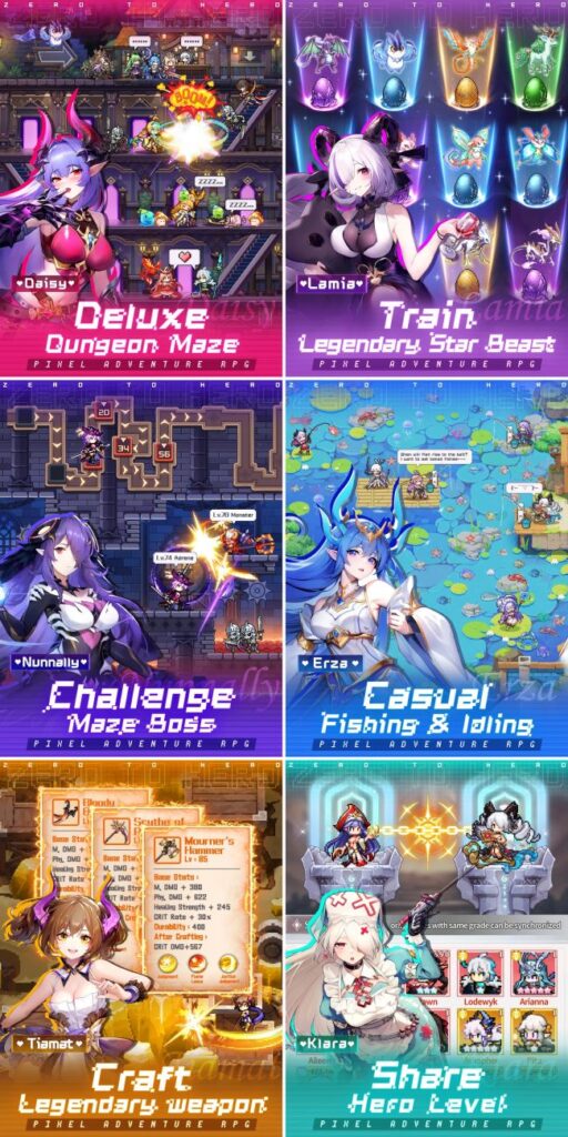 Zero to Hero: Pixel Saga เป็นเกมมือถือ RPG แนว Idle Pixel ให้คุณกอบกู้โลกเวทมนตร์ที่ปั่นป่วน จ้างฮีโร่จากหลากหลายเผ่าพันธุ์ที่มีทักษะเฉพาะตัว ตั้งทีมปฏิบัติการของคุณเอง และขัดขวางราชาปีศาจ คุณยังสามารถสำรวจเรื่องราวที่ไม่เหมือนใครเบื้องลึกเบื้องหลังของฮีโร่ นอกจากนี้ยังมีสัตว์ร้ายและสัตว์เลี้ยงน่ารักให้สะสม เมื่อลงชื่อเข้าใช้ คุณจะได้รับพี่เลี้ยงสุดรักตั้งแต่ครั้งแรก