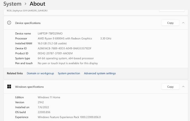 ASUS ROG Zephyrus G14 สำหรับการทดสอบในครั้งนี้มาพร้อมกับการใช้งานสเปคซีพียู AMD Ryzen 9 6900HS ซึ่งเป็นซีพียูที่มาพร้อมกับจำนวนคอร์การทำงาน 8 core 16 threads จับคู่กับการ์ดจอ AMD Radeon RX 6700S แรม 16GB พร้อมที่เก็บข้อมูล 1TB แบบ SSD