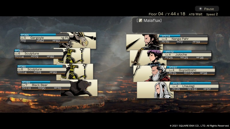 องค์ประกอบที่ 2 ที่ถือว่าเป็นหัวใจหลักของเกมนี้เช่นกันคือ ระบบการต่อสู้ภายในเกมที่เรียบง่าย แต่ต้องใช้การวางแผนอย่างมาก เพราะเกมจะใช้ระบบ ATB (Active Time Battle) ที่ตัวละครแต่ละตัวจะมีเกจแอ็กชั่นค่อย ๆ เพิ่มขึ้นมาเรื่อย ๆ โดยความเร็วในการเพิ่มของเกจนี้ขึ้นอยู่กับค่า Speed ของตัวละคร ยิ่งตัวละครมีแต้ม Speed มากเท่าไหร่ ก็ยิ่งทำให้ออกแอ็กชั่นได้เร็วมากขึ้นเท่านั้น