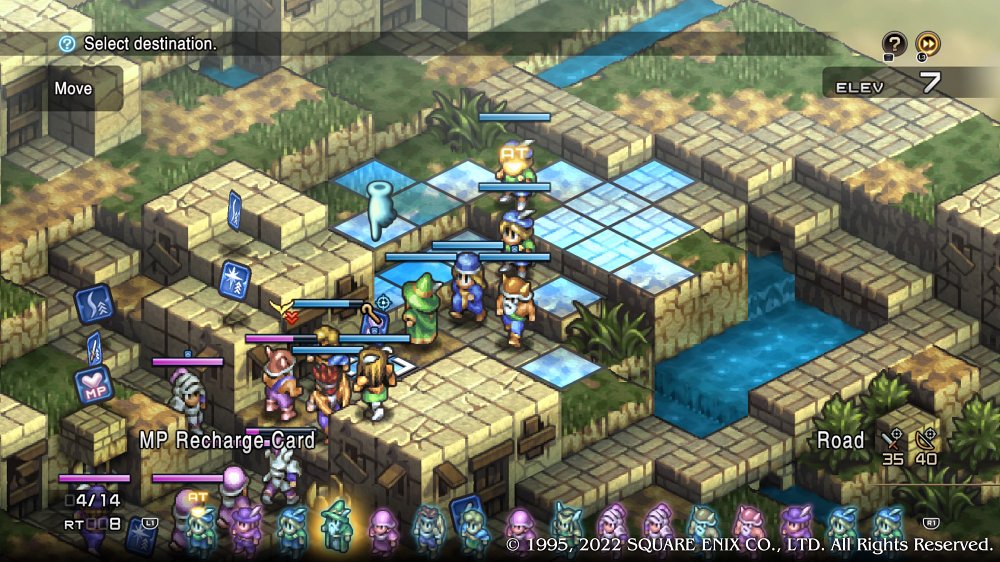 และเพื่อให้การเล่นเกม SRPG เกมนี้เข้าถึงการวางแผนที่ล้ำลึก ตัวเกมได้มีการปรับมุมมองแผนที่ให้เราได้เลือกใช้ทั้งหมด 2 แบบหลัก ๆ ด้วยกัน ได้แก่มุมมองแบบแนวเฉียงที่จะทำให้เรามองเห็นแผนที่ได้แบบ 2.5D ทำให้เราจะได้เห็นความสูงต่ำของแผนที่ ในขณะเดียวกัน ตัวเกมก็จะมีการปรับมุมกล้องแบบมุมมองจากด้านบน (Bird Eyes View) เพื่อให้เราได้เห็นตำแหน่งของตัวละครแต่ละตัวแบบชัด ๆ อีกด้วย แต่จุดที่น่าเสียดายที่สุดสำหรับผู้เขียนตั้งแต่เกมต้นฉบับ มาจนถึงเกม Remake รอบนี้ก็คือ เราไม่สามารถหมุนแผนที่ในขณะที่อยู่ในมุมมองแบบแนวเฉียงได้ ซึ่งเป็นอะไรที่ค่อนข้างขัดใจอยู่พอสมควรเลยทีเดียว เพราะทำให้ผู้เขียนเดินผิดช่องอยู่บ่อยครั้ง เพราะเราไม่สามารถหมุนมุมกล้องได้นั่นเอง