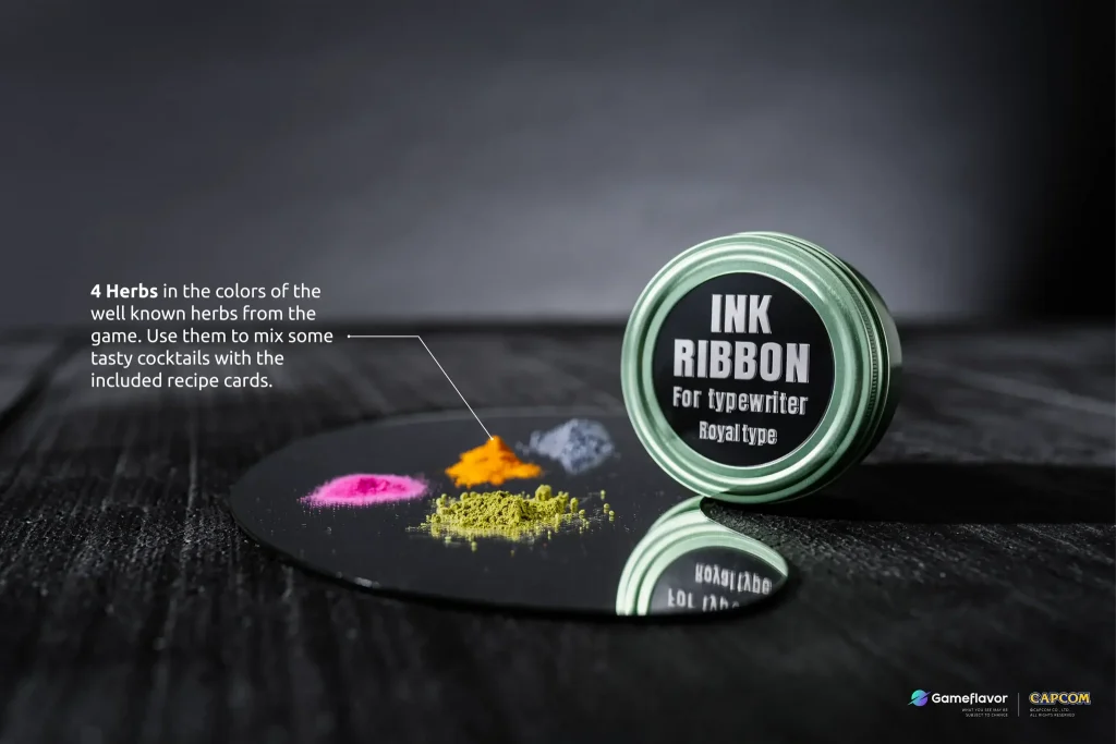 ในส่วนตลับหมึกนั้นได้จำลองเป็นผงสมุนไพร 4 ชนิดที่แฟนๆเกมต้องคุ้นเคยเป็นอย่างดีนั่นก็คือ Hibiskus (red), Spinach (green), Kurkuma (yellow), Blueberry (blue) โดยผง 4 ต่างๆนี้เอาไว้เป็นส่วนผสมเครื่องดื่มเพิ่มเติมรสชาติและสร้างสีสันให้กับตัวเครื่องดื่มได้อย่างดีเยี่ยมไม่ว่าจะเป็น ชาอัญชัน ชาเขียวมัทฉะ ขมิ้น และบีทรูทแดง หรือจะนำไปเป็นส่วนผสมในรูปแบบอื่นๆก็สุดแล้วแต่เลยครับ
