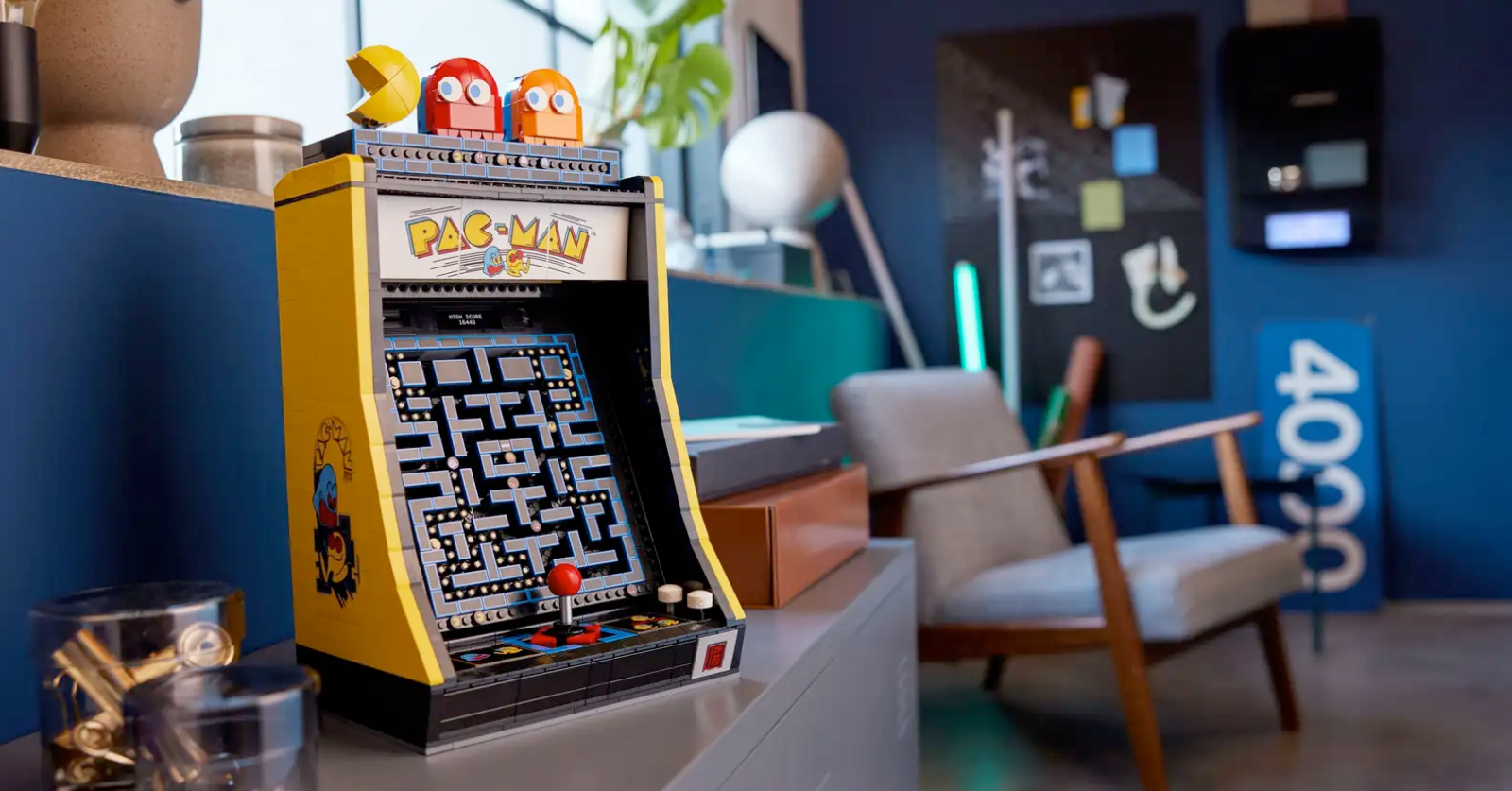 PAC-MAN Arcade จำลองตู้เกมในตำนานช่วงยุค 80s มาพร้อมกับลูกเล่นที่จะทำให้ผู้เล่นต้องว้าวกับส่วนต่างๆของตัวต่อนี้ เริ่มตั้งแต่ตัวต่อด้านบนตู้ที่สามารถหมุนได้ถอดได้ ตัวกดหยอดเหรียญด้านล่างที่มาพร้อมกับไฟสีแดงที่จำลองช่องหยอดเหรียญบนตู้เกม ส่วนด้านข้างมีกลไกที่หมุนสำหรับให้ตัว PAC-MAN และเหล่ามอนสเตอร์ขยับได้และมีหน้าจอแสดงผลของคะแนนอีกด้วย นอกจากนี้ทางด้านหลังก็สามารถซ่อนตัวต่อชิ้นเล็กๆไว้ได้ด้วย โดยชุดนี้มีตัวต่อทั้งหมด 2651 ชิ้น มีความสูงมากกว่า 12.5 นิ้ว (32 ซม.) กว้าง 10 นิ้ว (25 ซม.) และลึก 7 นิ้ว (17 ซม.) และมีราคาอยู่ที่ $269.99 หรือประมาณ 9,349 บาท