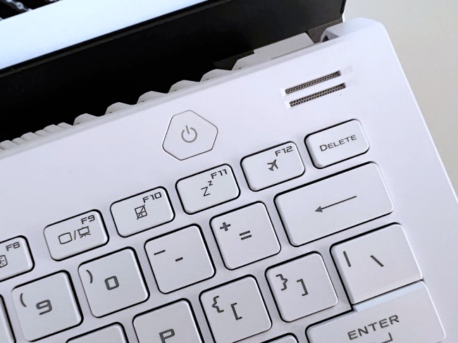 คีย์บอร์ดเป็นแบบมาตรฐาน โดยที่จะมีปุ่มพิเศษเพิ่มเข้ามาทั้งหมด 4 ปุ่มบริเวณขอบด้านบนซ้ายมือ แน่นอนว่าเราสามารถที่จะปรับแต่งคำสั่งเมื่อกดแต่ละปุ่มได้ผ่านซอฟต์แวร์ Armoury Crate