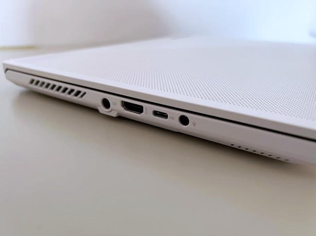 พอร์ตการใช้งานที่ด้านซ้ายของตัวเครื่องประกอบไปด้วย HDMI 2.0b, USB-C 3.2 Gen 2 รองรับ DisplayPort และรูหูฟัง 3.5 มิลลิเมตร